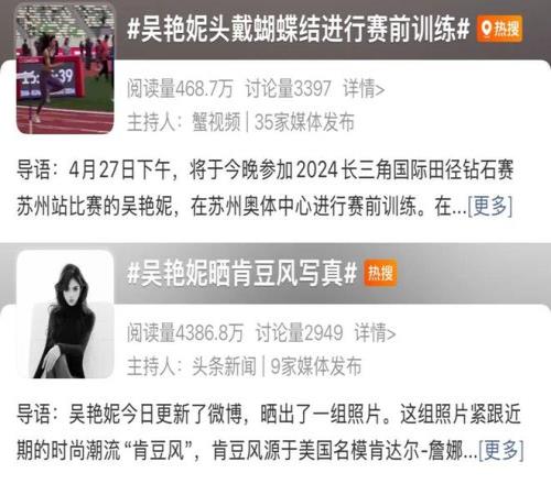 其实深究这一现象的背后,吴艳妮近年来花样翻新抢戏上瘾当然是一方面的原因,各路新闻媒体忽视运动本质追逐话题流量的势利眼也是另一方面的重要原因。