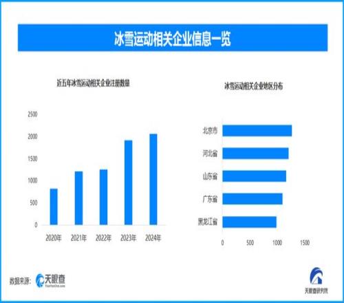 天眼查专业版数据显示,截至目前我国现存在业、存续状态的冰雪运动相关企业超1.4万家。其中,2025年截至目前新增注册相关企业约2100余家,从企业注册数量趋势来看,近五年间,冰雪运动相关企业的注册数量呈现出逐年增长的态势,并在2024年达到顶峰。
