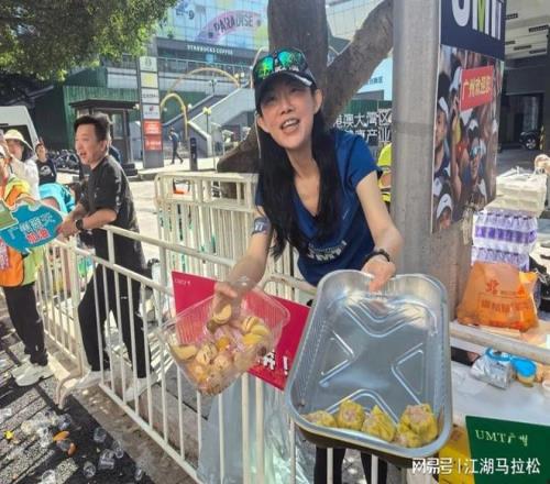 广州市民的热情,表现方式五花八门,多是街坊式的。当进入海珠区后,从25K到27K,赛道旁全是学生加油点,孩子们稚嫩的声音,是广马最动听的旋律。而当进入荔湾区时,又换了种风格,有无数的私补,市民们端着杯子、盘子,将饮料、食品往你手里塞。