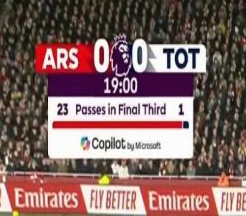 北伦敦德比前19分钟阿森纳23次进攻三区传球,热刺仅1次
