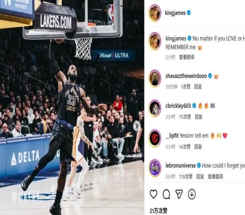北京时间今日,湖人队球星勒布朗-詹姆斯更新个人社媒,他在完成本赛季首次背靠背比赛后晒出了上一场的比赛照,并...
